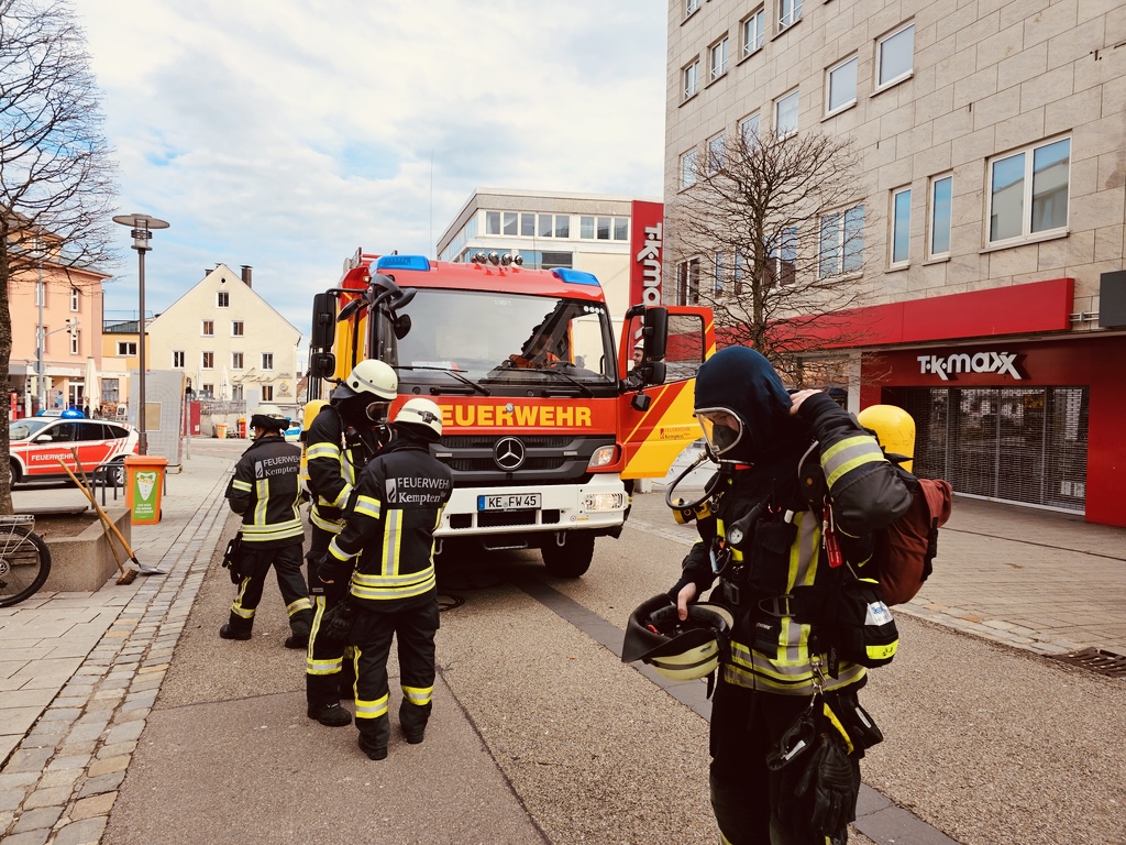 Um kurz nach 9 Uhr, während der Bewegungsfahrt wurden die Kameraden zu einer Rauchentwicklung in einem Fitnesstudio in der Kemptener Innenstadt alarmiert. Zusätzlich zur Feiertagswache wurde der Löschung 1 der Hauptwache ergänzend alarmiert. Die Lage vor Ort war für die ersteintreffenden Kräfte schnell ersichtlich. Die Rauchentwicklung war auf einen LED Deckenscheinwerfer zurückzuführen, dieser war bereits abgebrannt und lag auf dem Boden. Das Studio wurde durch die Kameraden stromlos geschaltet, die Decke mittels Wärmebildkamera kontrolliert, den Scheinwerfer ins Freie verbracht und anschließend das Objekt an den Verantwortlichen übergeben. Somit war nach ca einer Stunden der erste Einsatz beendet.