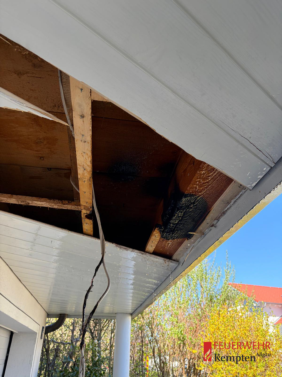 Dabei stellte sich heraus, dass ein Kabel eines Außenstrahlers unter der Holzverkleidung gebrannt hatte. Das Feuer konnte schnell abgelöscht und eine weitere Ausbreitung verhindert werden. Abschließend wurde der Bereich kontrolliert.