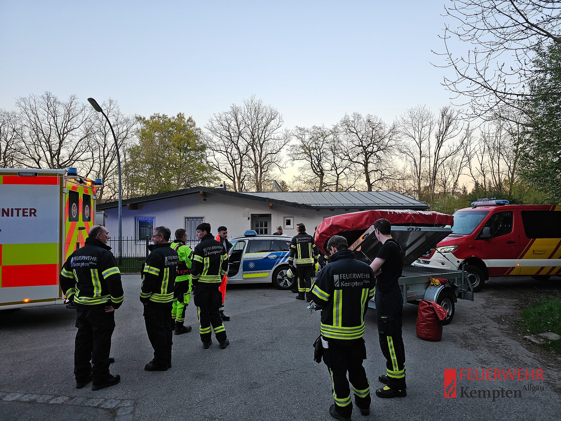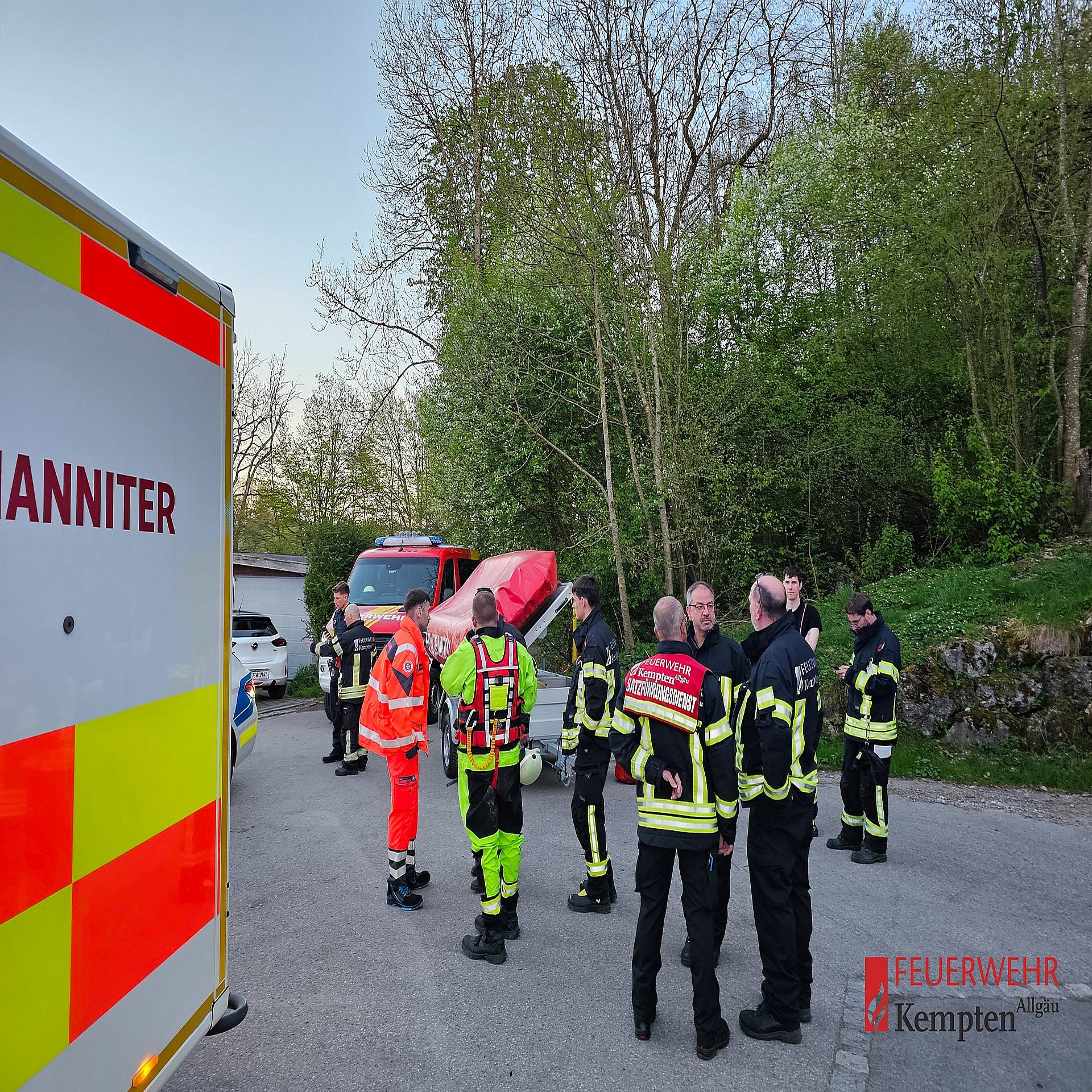 Neben der Feuerwehr waren auch der Rettungsdienst, die Wasserwacht sowie ein Rettungshubschrauber im Einsatz. Die Feuerwehr kontrollierte hierbei beide Bereiche der Iller, sowohl den Kemptener als auch den St. Manger Uferabschnitt.