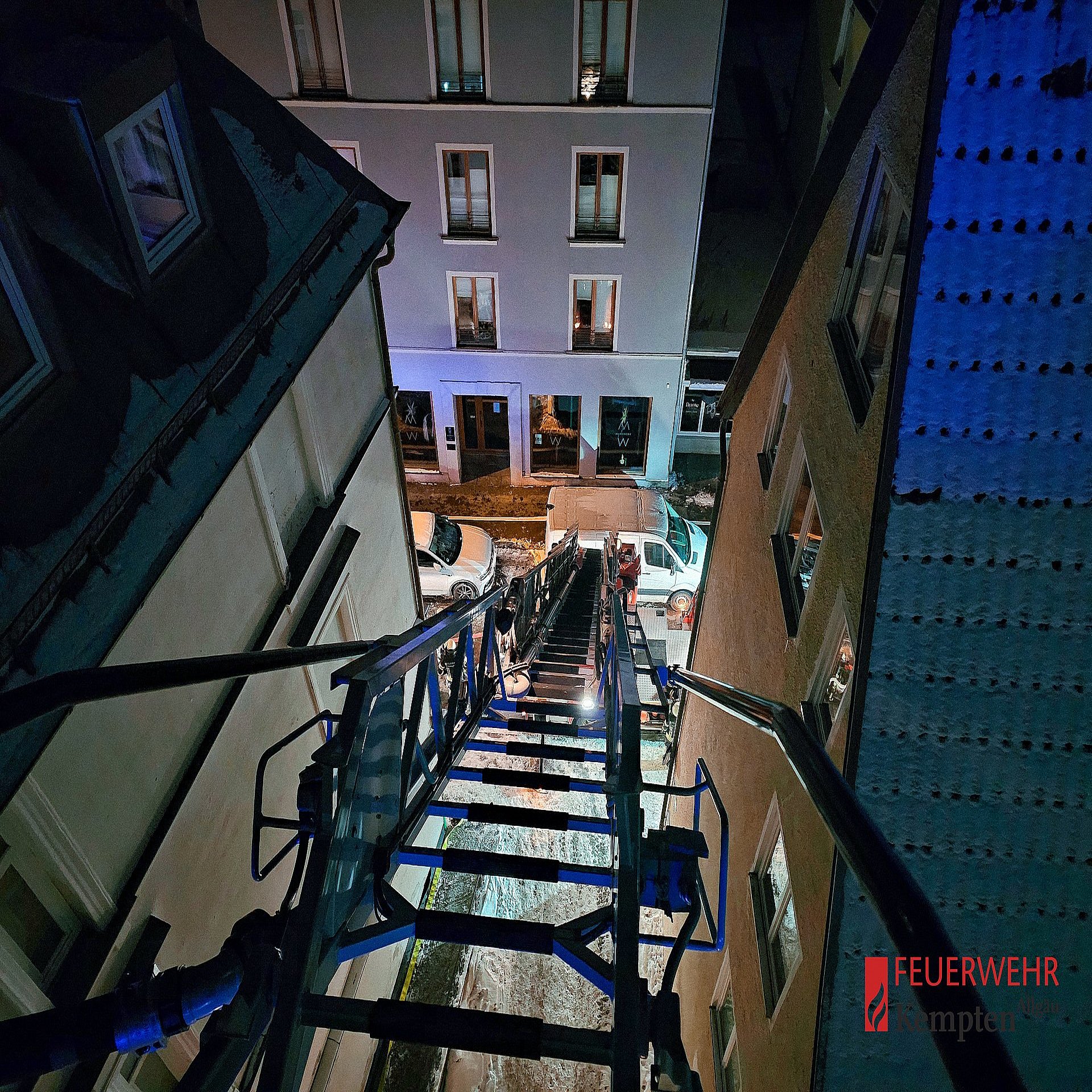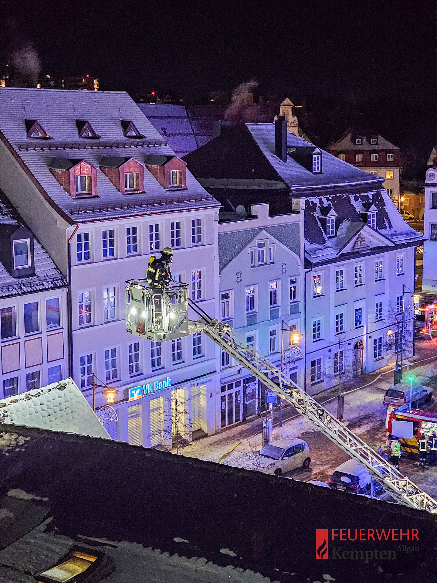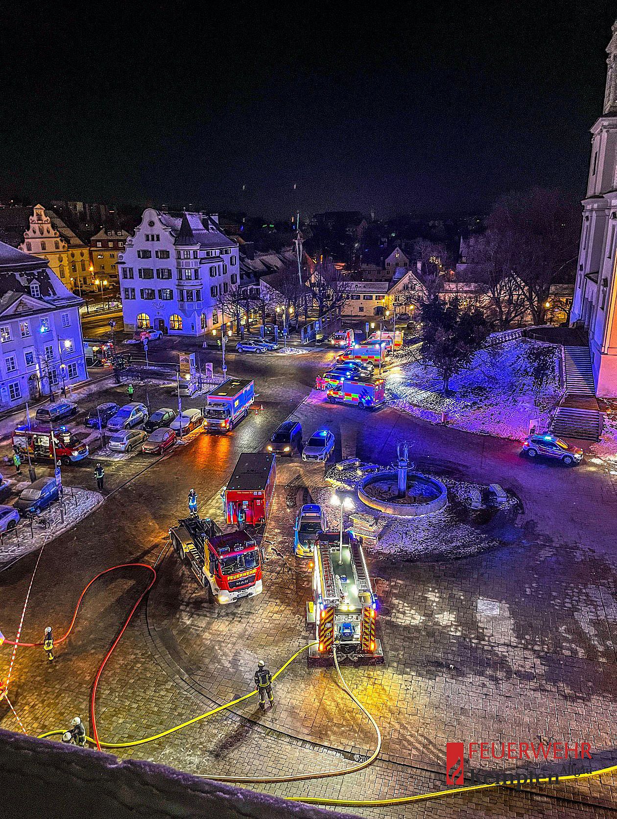 Rauch drang aus einer verschlossenen Wohnungen, und ein Rauchmelder hatte ausgelöst. Die Wohnung wurde parallel von außen über die Drehleiter aus St. Mang kontrolliert, und von innen begangen. Aus der Brandwohnung konnte eine Person gerettet werden, welche verletzt dem Rettungsdienst übergeben wurde. Als Ursache stellte sich angebranntes Essen heraus. Vorsorglich wurde das gesamte Gebäude evakuiert.