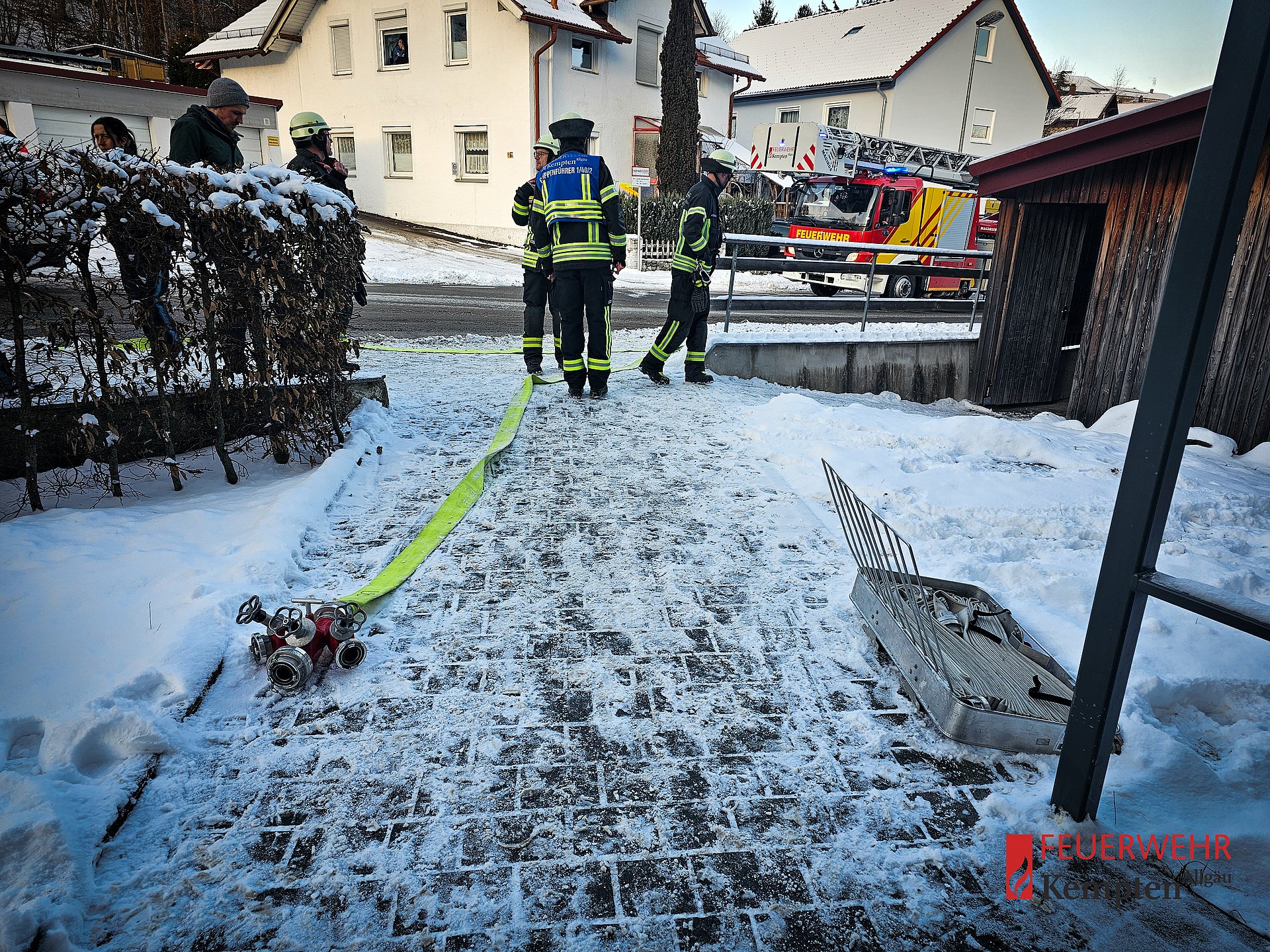 Zur Sicherheit wurden die angrenzenden Wohnungen evakuiert. Nach dem Öffnen der Wohnung ging ein Trupp unter Atemschutz vor und löschte den brennenden Adventskranz im Waschbecken mit dem Wasserhahn ab. Anschließend wurde die Wohnung gründlich belüftet, bevor die evakuierten Bewohnerinnen und Bewohner der anderen Wohnungen zurückkehren konnten.