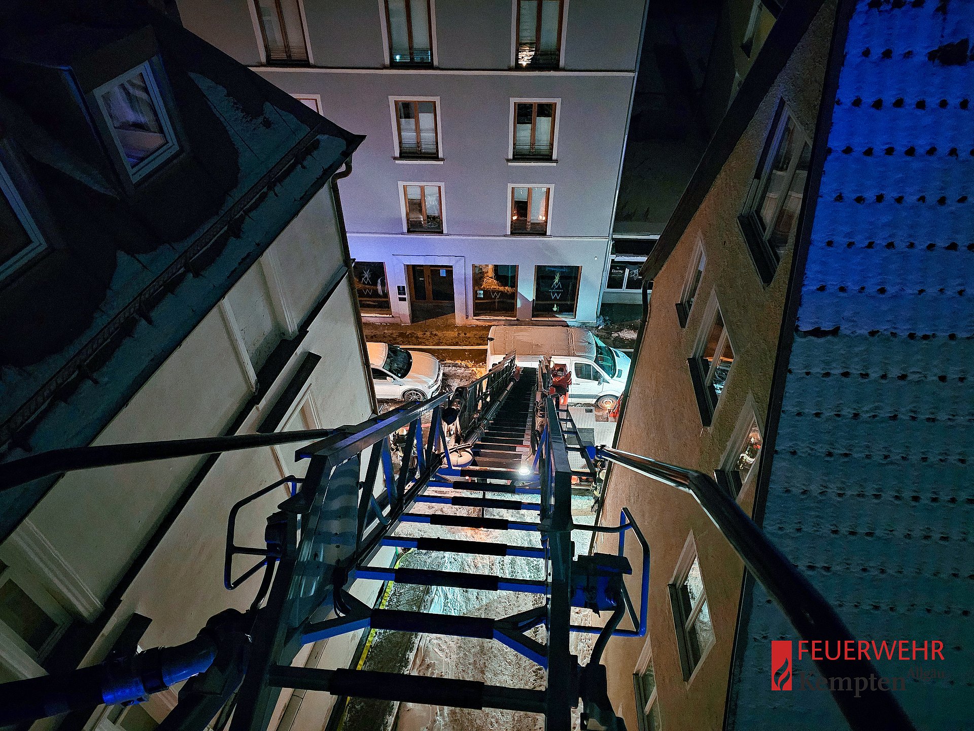 Zur Unterstützung kamen zwei Drehleitern zum Einsatz. Vor Ort waren die Löschzüge 1, 2 und 4. Die Arbeiten dauerten bis in die frühen Morgenstunden an.