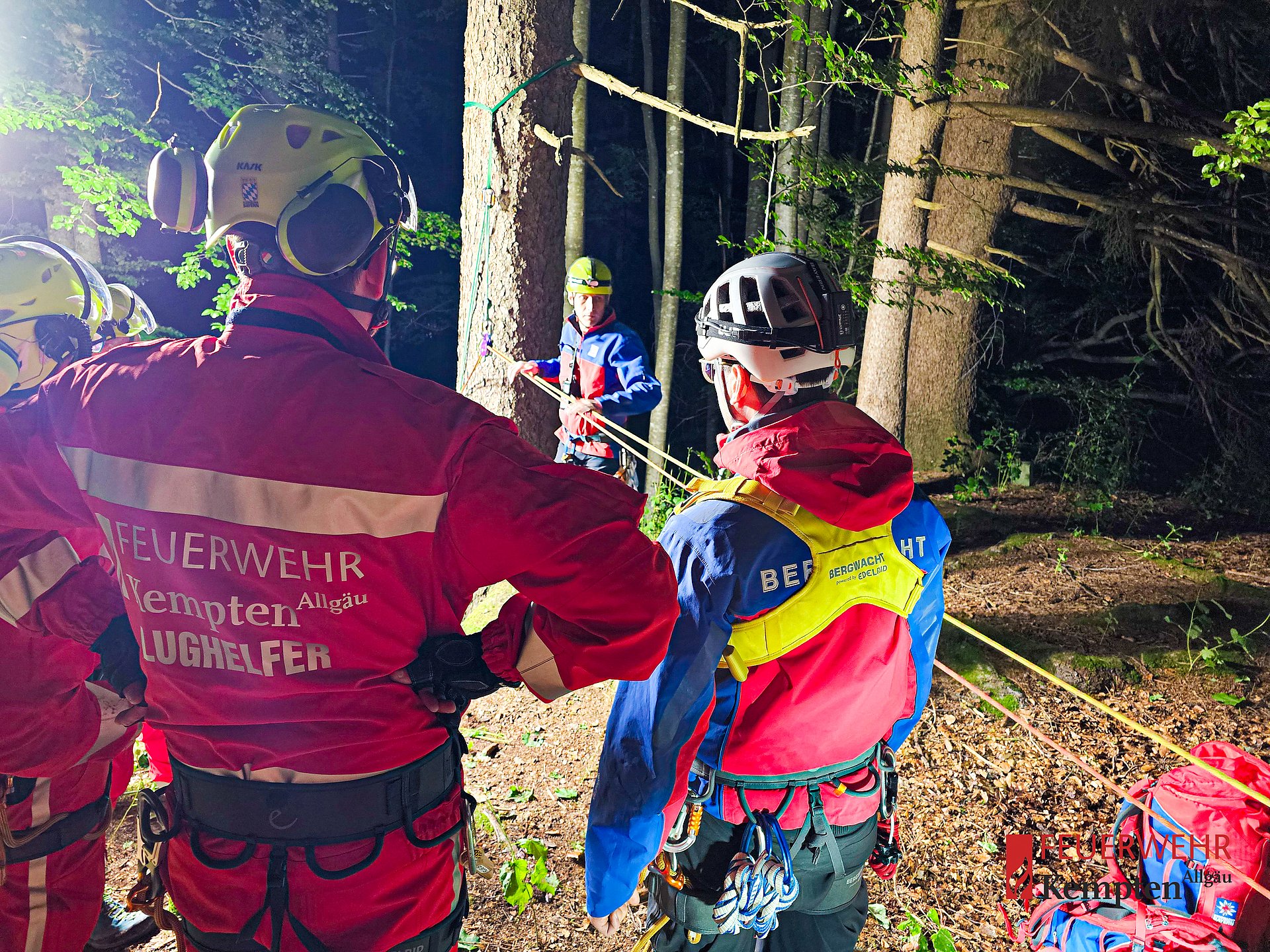 Am Mariaberg im Kalbsangsttobel fand am Donnerstag den 11.9.25 eine intensive Übung der Kemptner Flughelfer zusammen mit der Bergwacht Kempten statt. Ziel war es, verschiedene Einsatzszenarien in schwierigem und steilem Gelände realistisch zu trainieren.