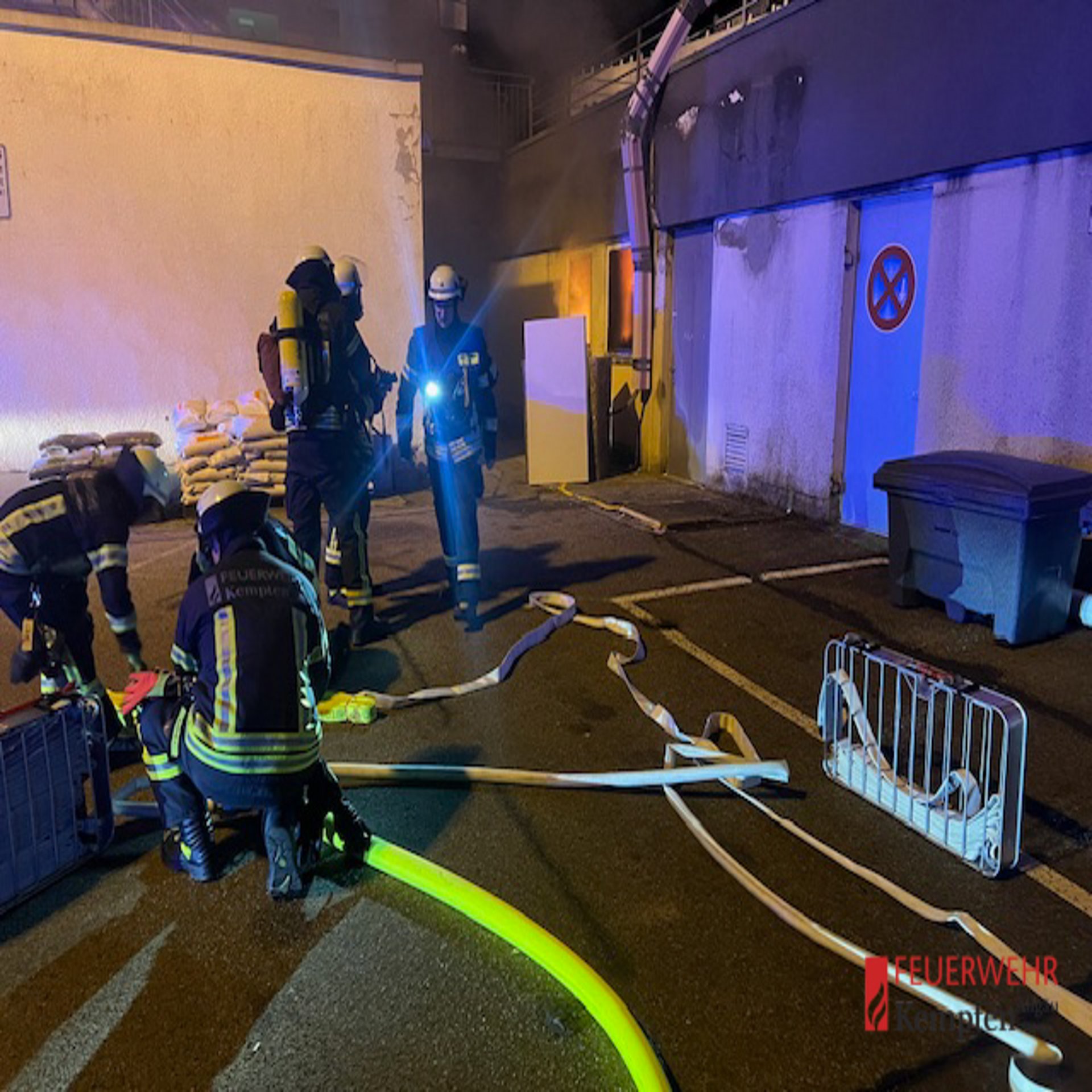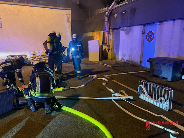 Unter Atemschutz konnte das Feuer mit einem Strahlrohr schnell unter Kontrolle gebracht werden. Gebrannt hatten Gegenstände in einem Regal, darunter Elektrogeräte sowie Verpackungsmaterial.